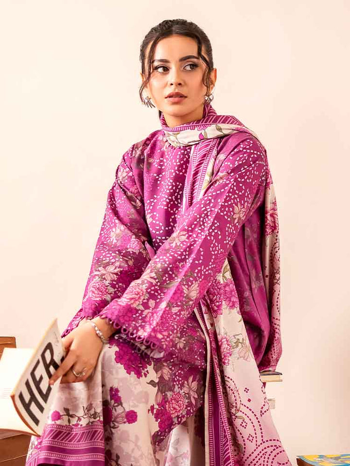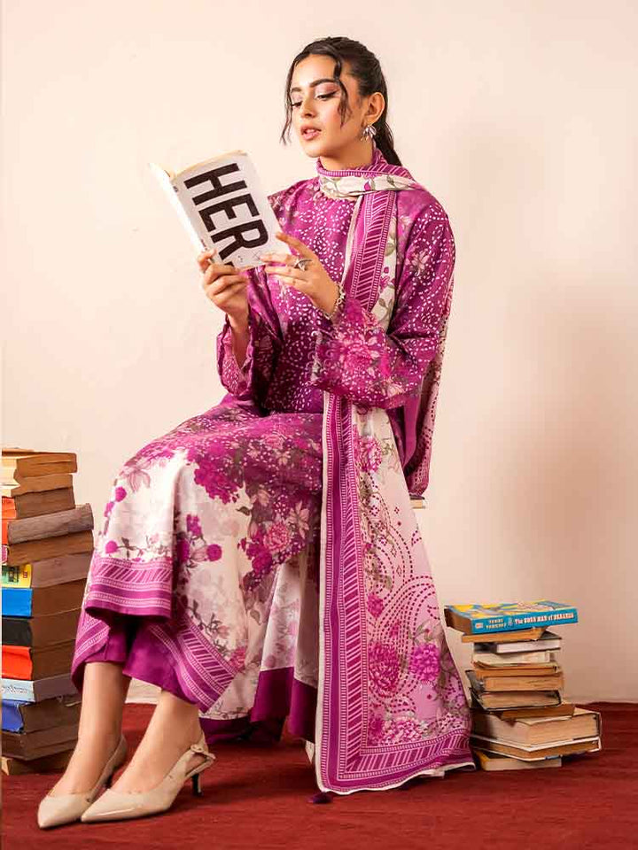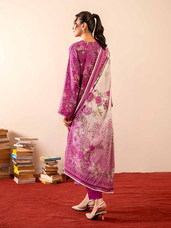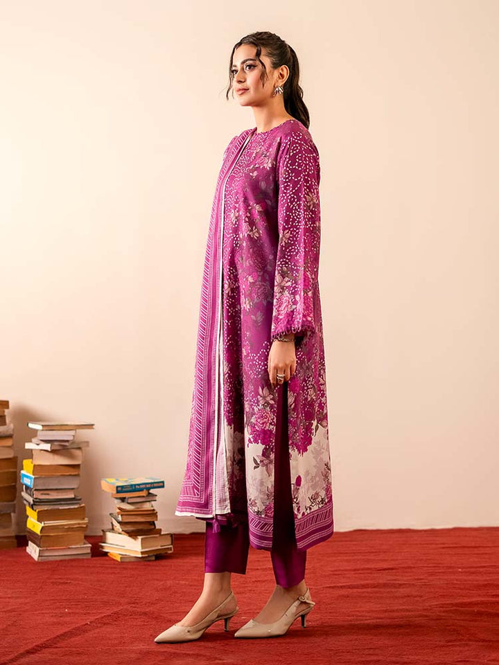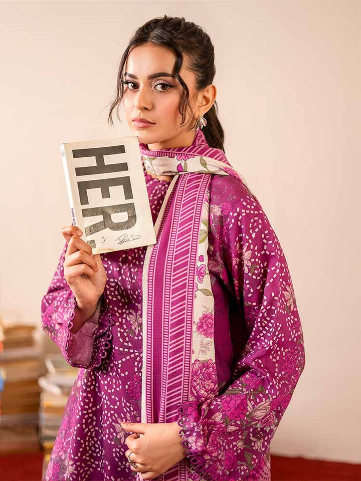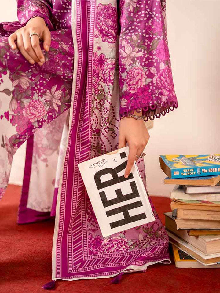 Sing a song of style and sophistication with the GEET 3-Piece Unstitched Digital Printed Linen Suit. This exquisite ensemble is a perfect blend of texture, print, and elegance, designed for the modern woman who appreciates detail. The shirt is crafted from vibrant Digital Printed Fancy Linen, creating a bold and beautiful statement, while the contrasting dyed linen trousers and a stunning Bana Dora linen dupatta complete this harmonious set.
