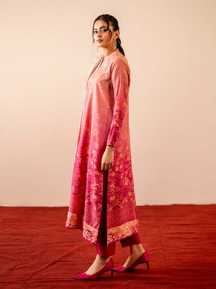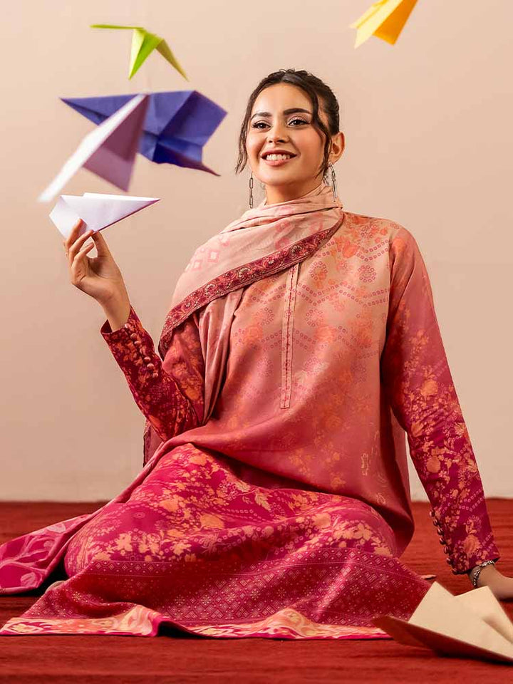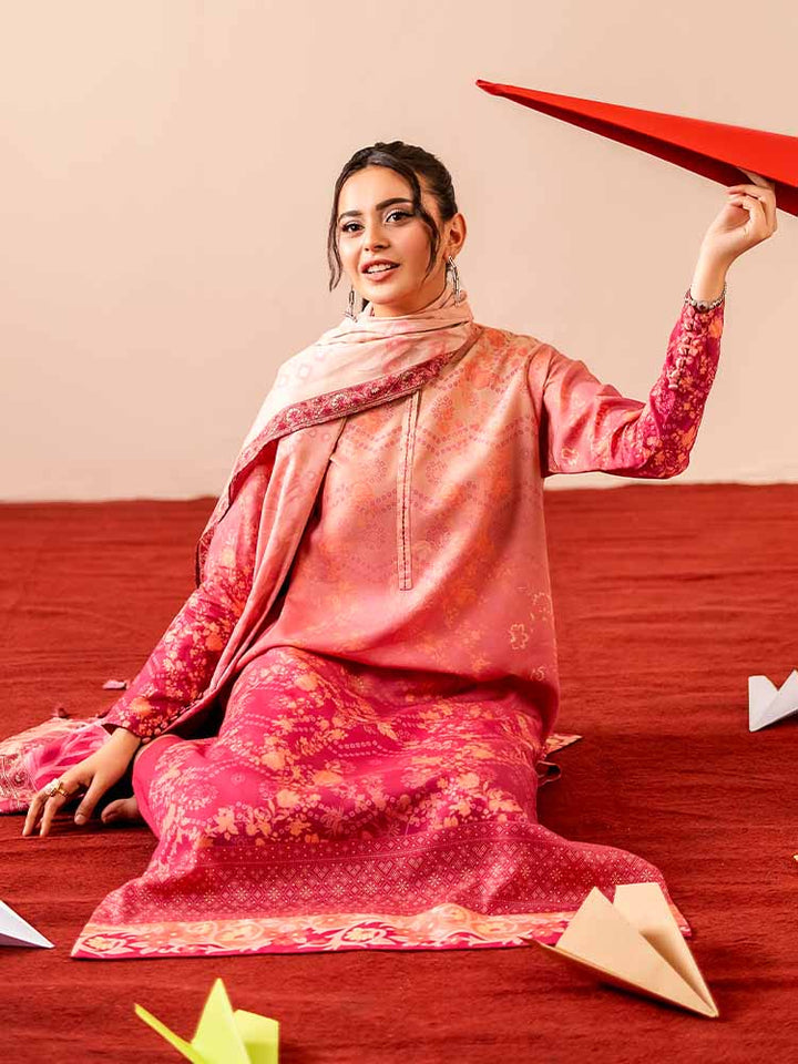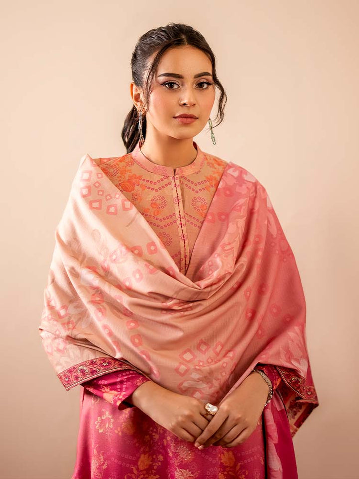 Sing a song of style and sophistication with the GEET 3-Piece Unstitched Digital Printed Linen Suit. This exquisite ensemble is a perfect blend of texture, print, and elegance, designed for the modern woman who appreciates detail. The shirt is crafted from vibrant Digital Printed Fancy Linen, creating a bold and beautiful statement, while the contrasting dyed linen trousers and a stunning Bana Dora linen dupatta complete this harmonious set.