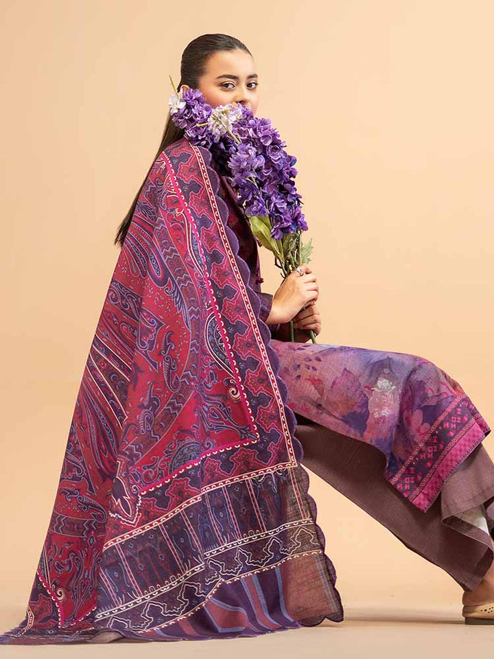POP GUL 3-Piece Unstitched Digital Printed Khaddar Suit